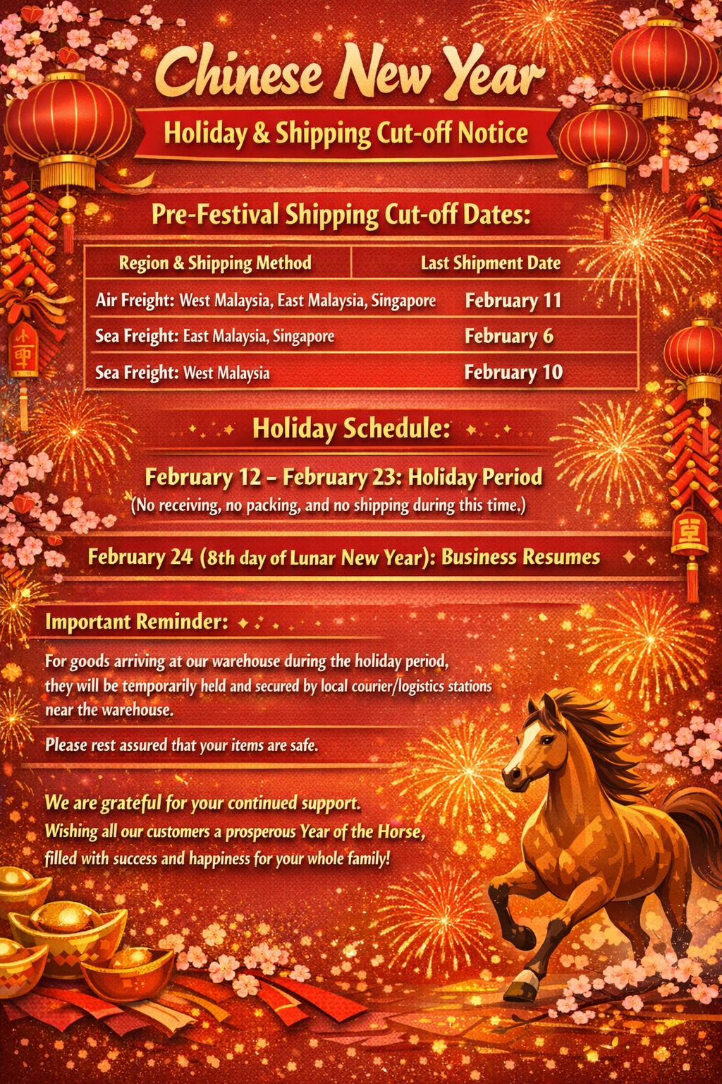 Chinese New Year Holiday & Shipping Cut-off Notice